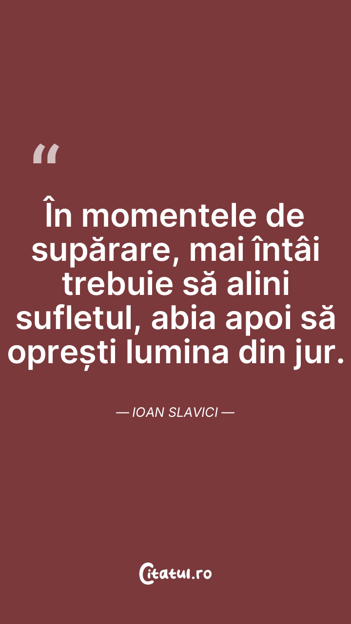 În momentele de supărare, mai întâi trebuie să alini sufletul, abia apoi să oprești lumina din jur. Ioan Slavici