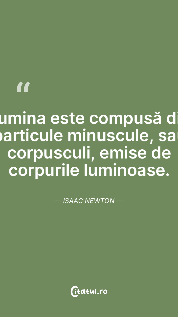 Lumina este compusă din particule minuscule, sau corpusculi, emise de corpurile luminoase. Isaac Newton