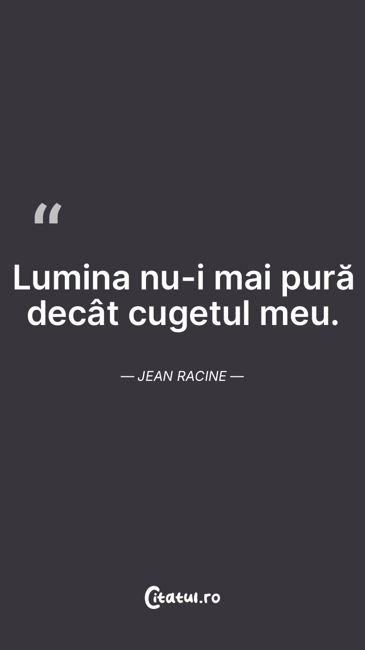 Lumina nu-i mai pură decât cugetul meu. Jean Racine