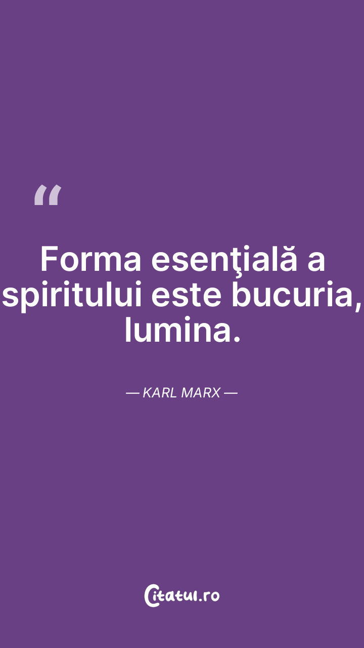 Forma esenţială a spiritului este bucuria, lumina. Karl Marx
