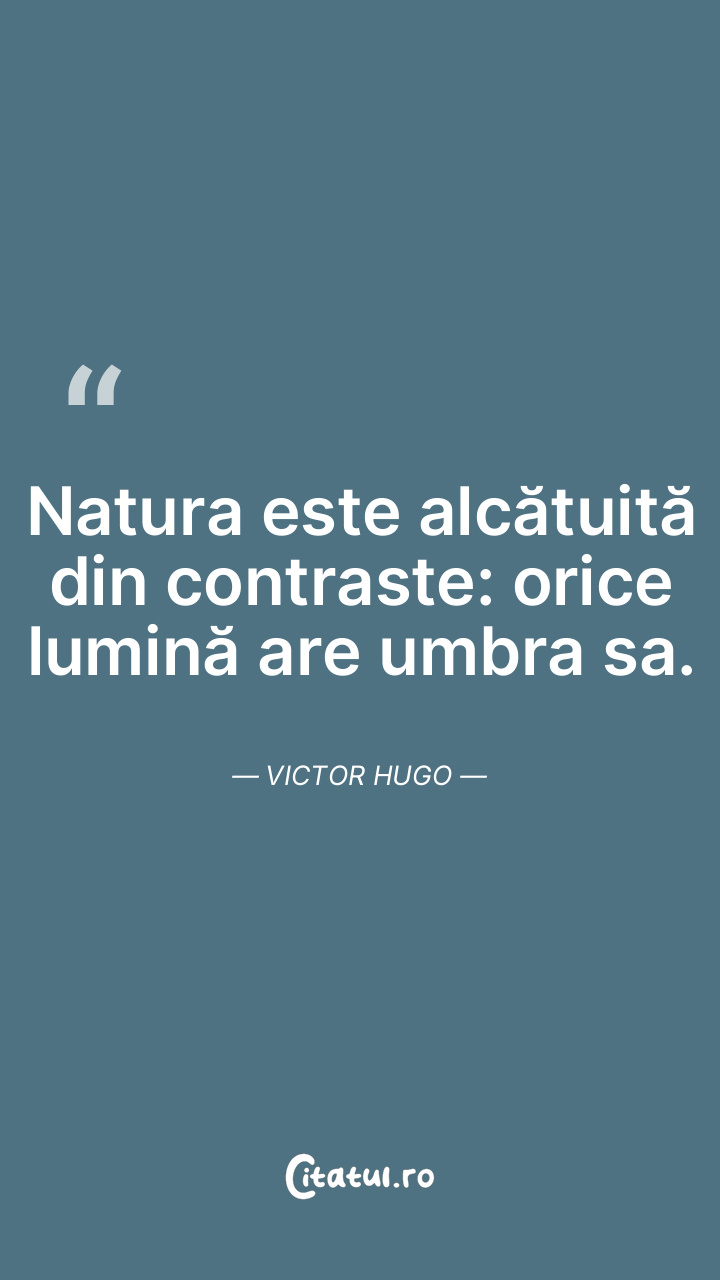 Natura este alcătuită din contraste: orice lumină are umbra sa. Victor Hugo