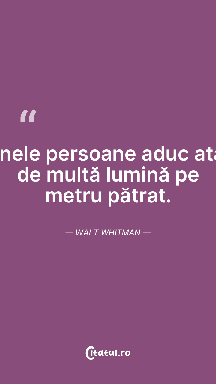 Unele persoane aduc atât de multă lumină pe metru pătrat. Walt Whitman