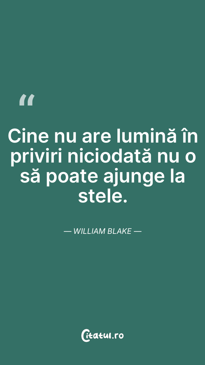 Cine nu are lumină în priviri niciodată nu o să poate ajunge la stele. William Blake