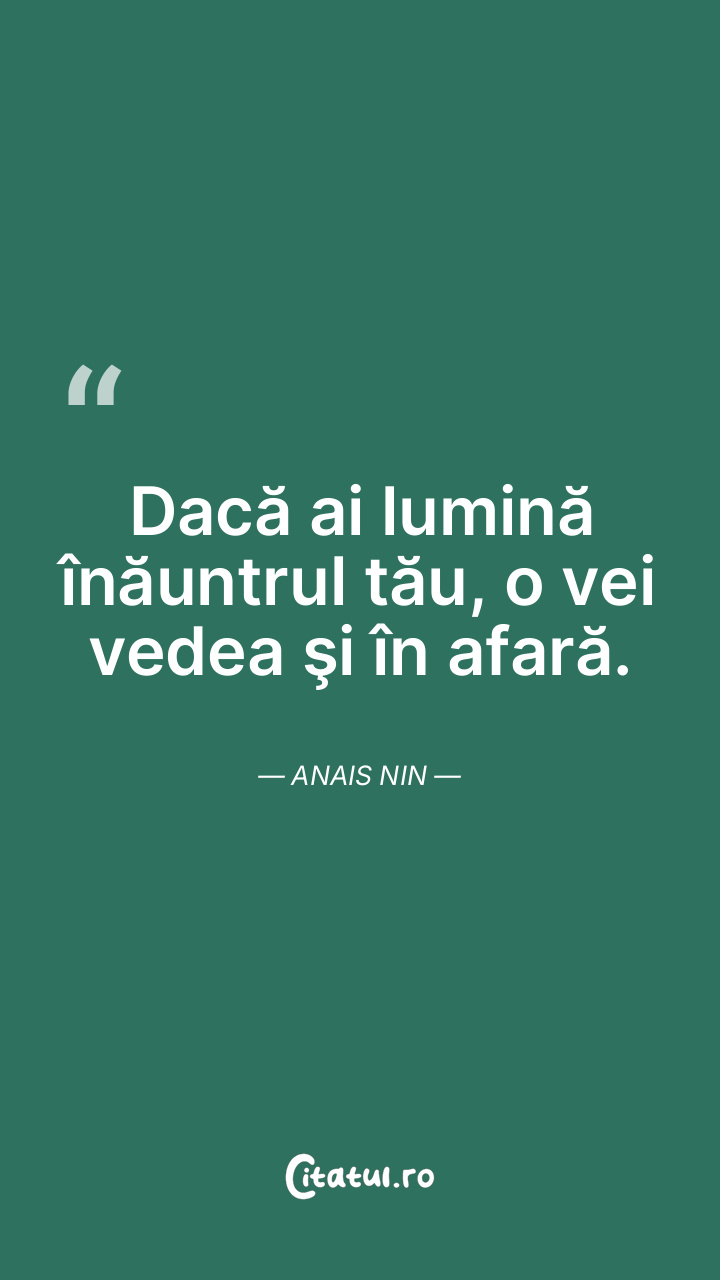 Dacă ai lumină înăuntrul tău, o vei vedea şi în afară. Anais Nin