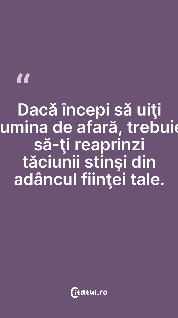 Dacă începi să uiţi lumina de afară, trebuie să-ţi reaprinzi tăciunii stinşi din adâncul fiinţei tale.