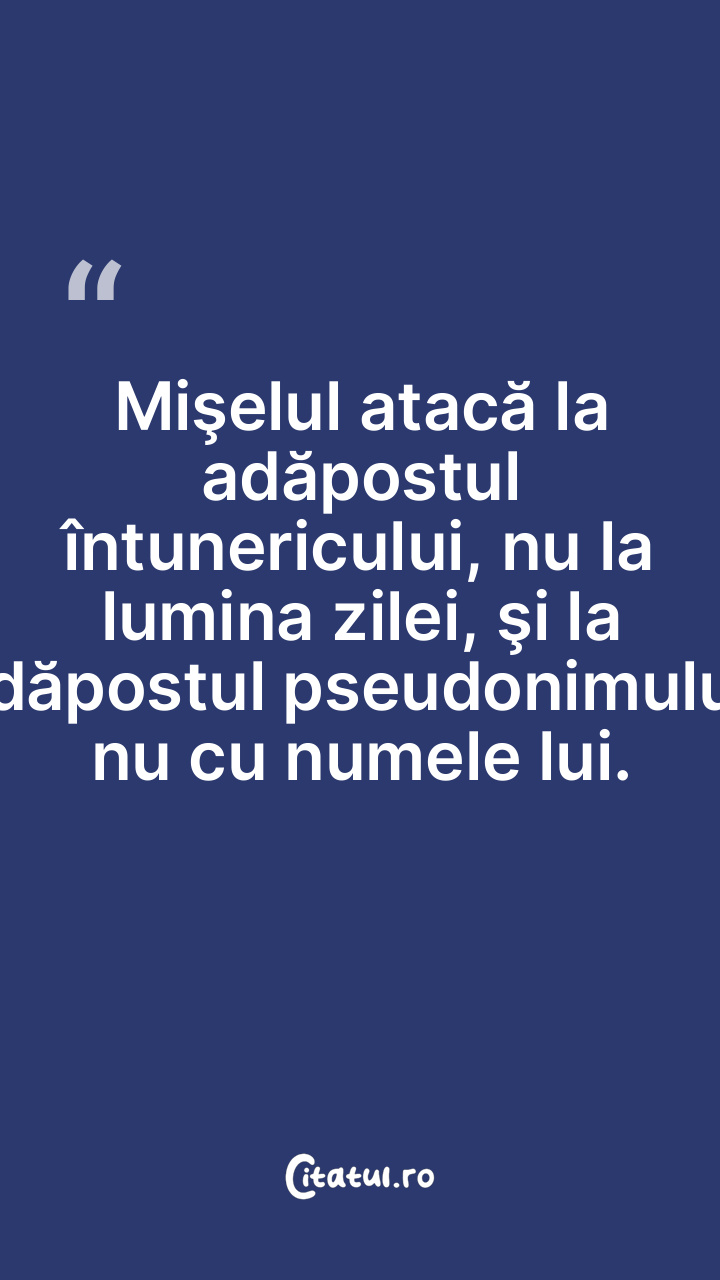 Mişelul atacă la adăpostul întunericului, nu la lumina zilei, şi la adăpostul pseudonimului, nu cu numele lui.
