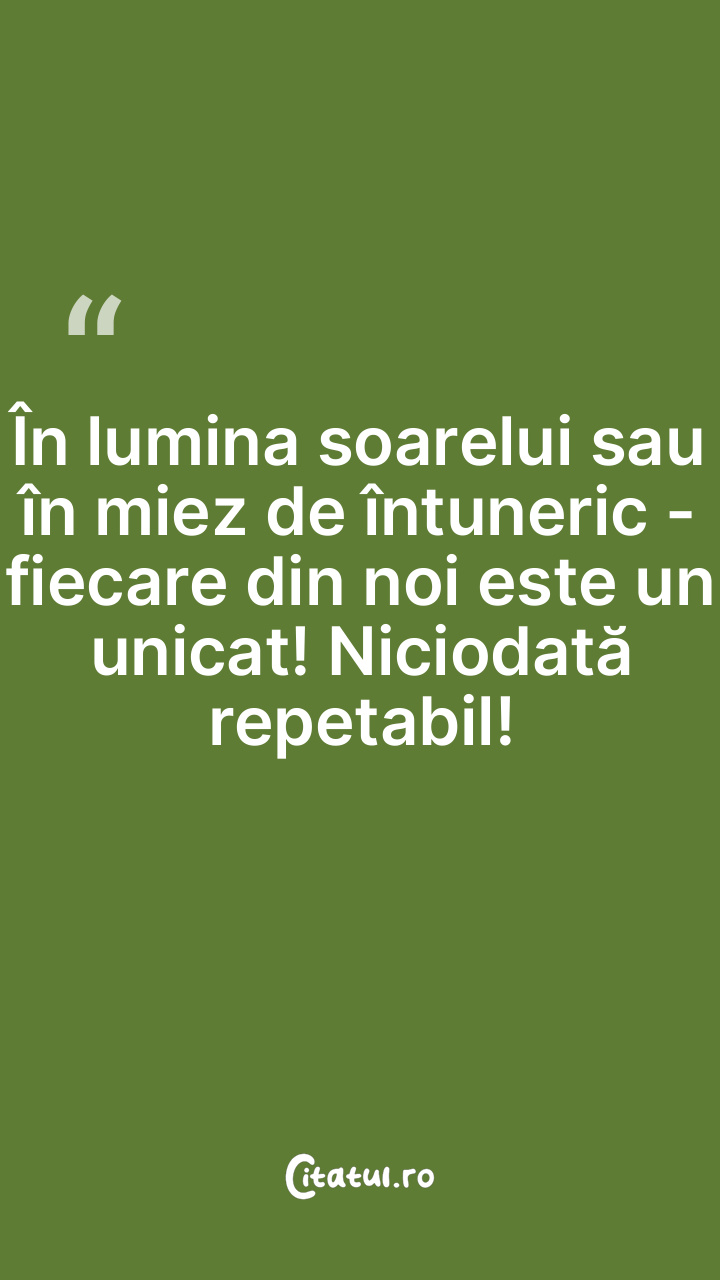 În lumina soarelui sau în miez de întuneric - fiecare din noi este un unicat! Niciodată repetabil!