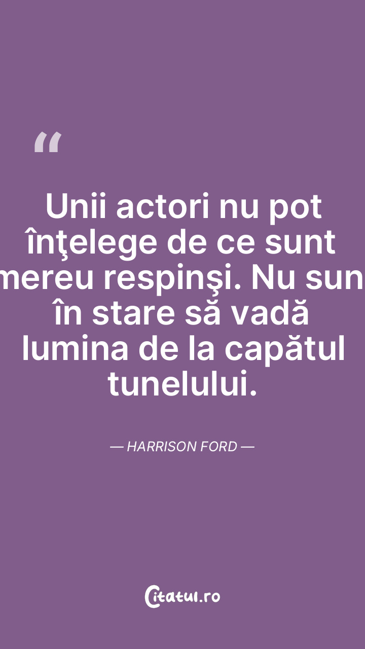 Unii actori nu pot înţelege de ce sunt mereu respinşi. Nu sunt în stare să vadă lumina de la capătul tunelului. Harrison Ford