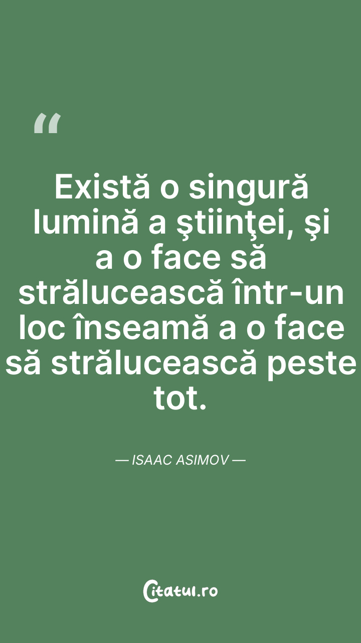 Există o singură lumină a ştiinţei, şi a o face să strălucească într-un loc înseamă a o face să strălucească peste tot. Isaac Asimov