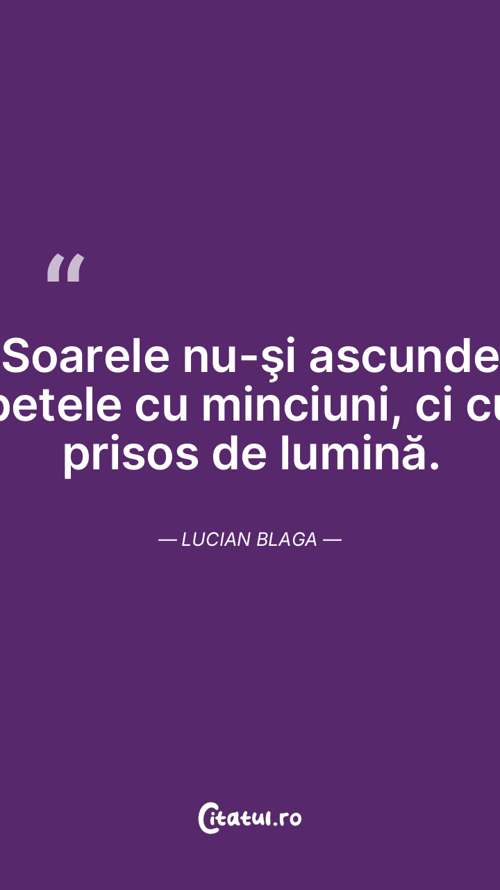 Soarele nu-şi ascunde petele cu minciuni, ci cu prisos de lumină. Lucian Blaga