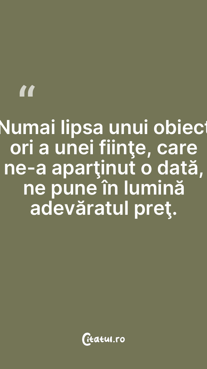 Numai lipsa unui obiect ori a unei fiinţe, care ne-a aparţinut o dată, ne pune în lumină adevăratul preţ.