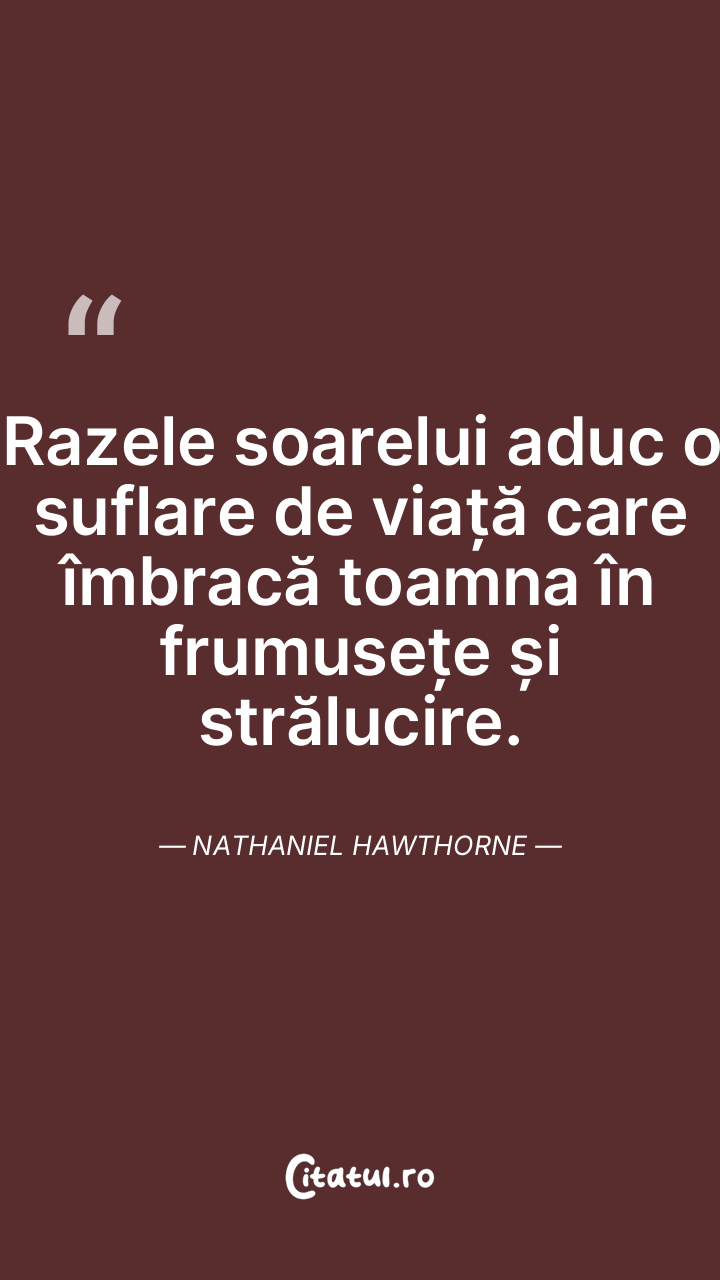 Razele soarelui aduc o suflare de viață care îmbracă toamna în frumusețe și strălucire. Nathaniel Hawthorne