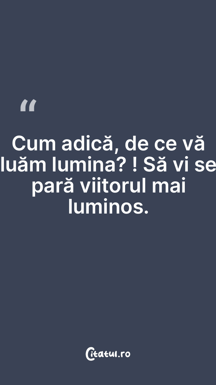Cum adică, de ce vă luăm lumina? ! Să vi se pară viitorul mai luminos.