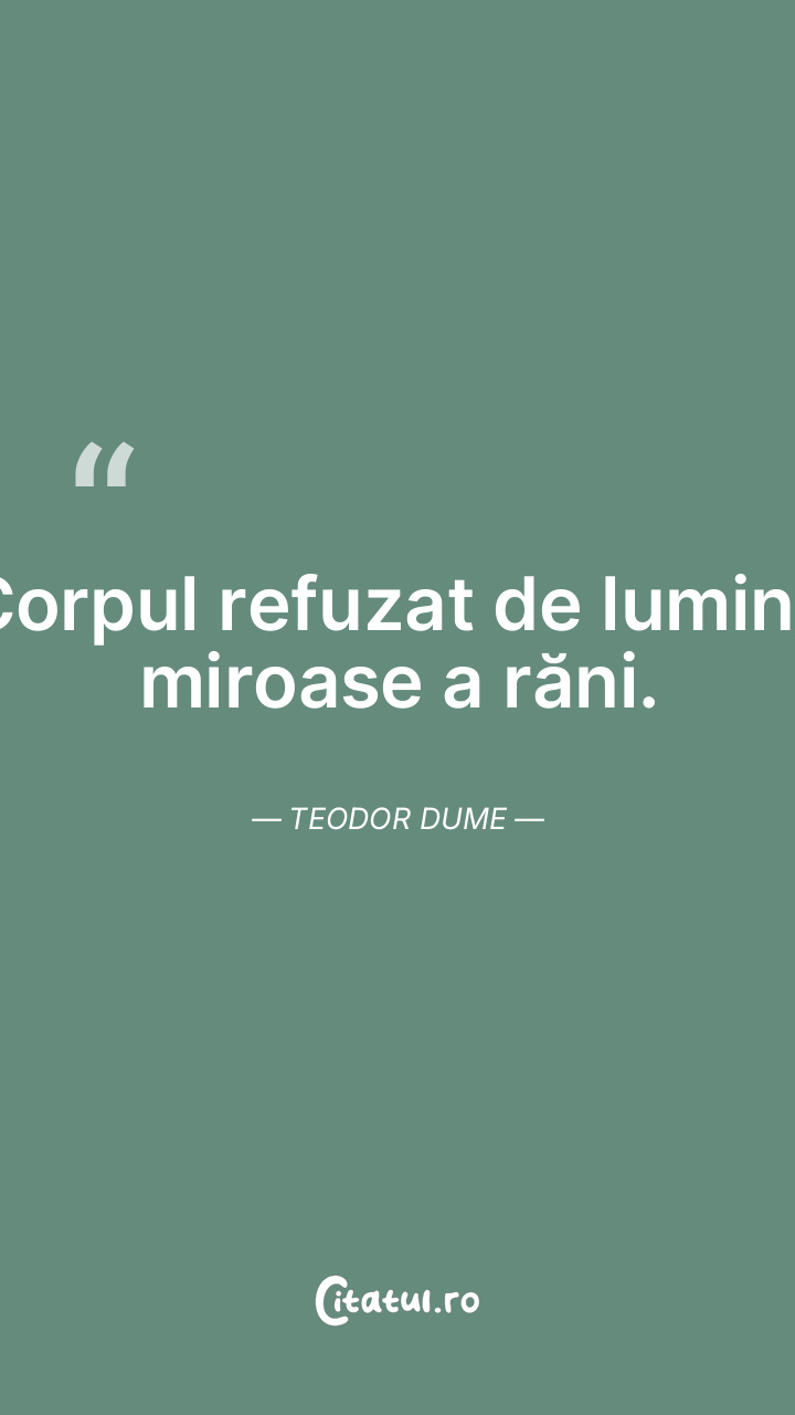 Corpul refuzat de lumină miroase a răni. Teodor Dume