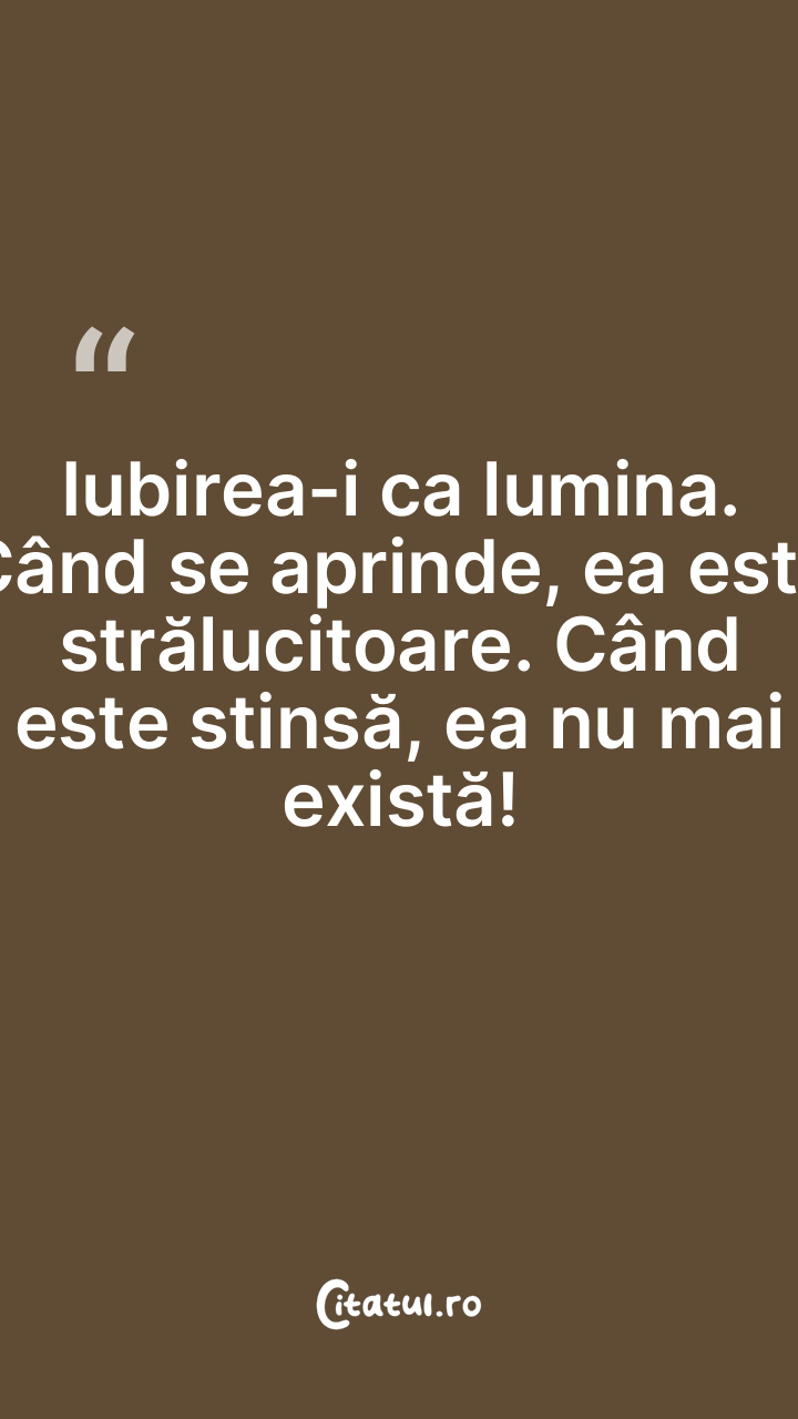 Iubirea-i ca lumina. Când se aprinde, ea este strălucitoare. Când este stinsă, ea nu mai există!