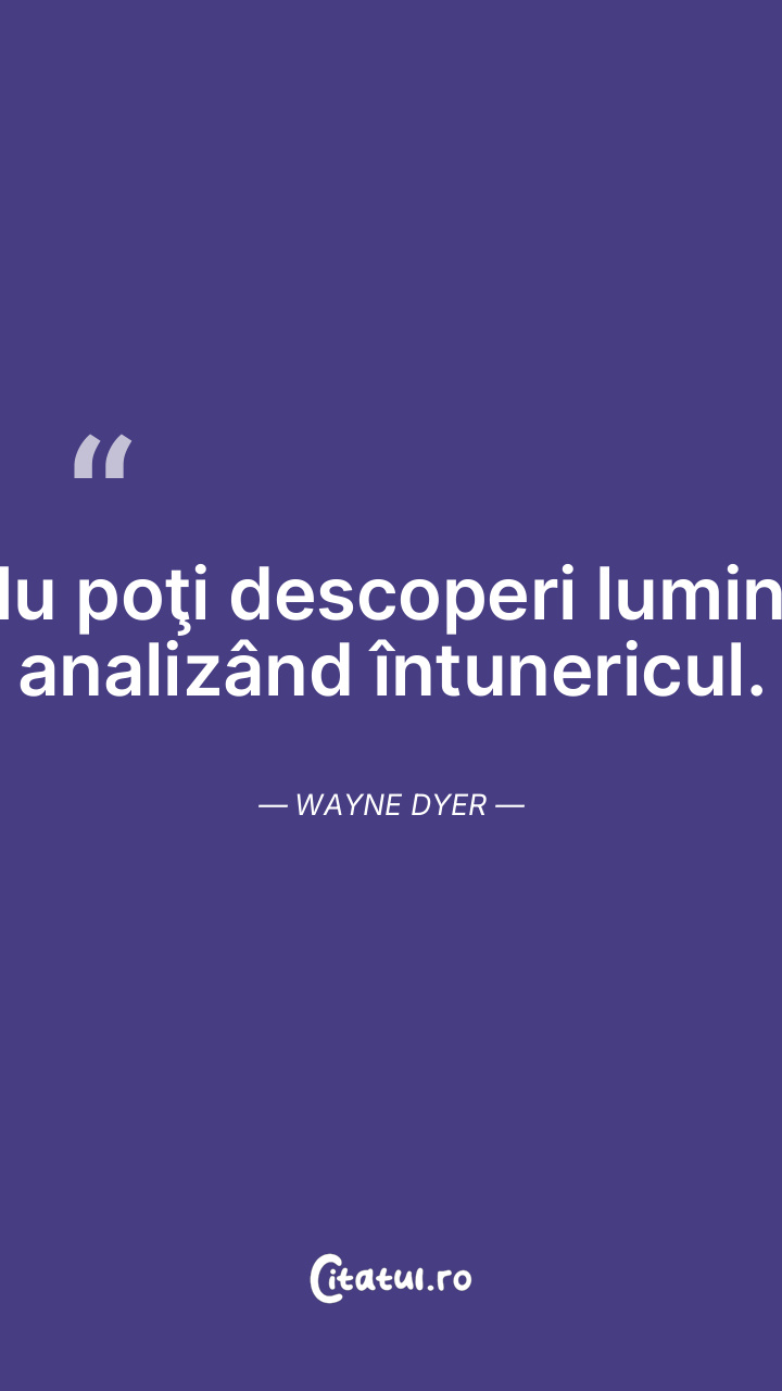 Nu poţi descoperi lumina analizând întunericul. Wayne Dyer