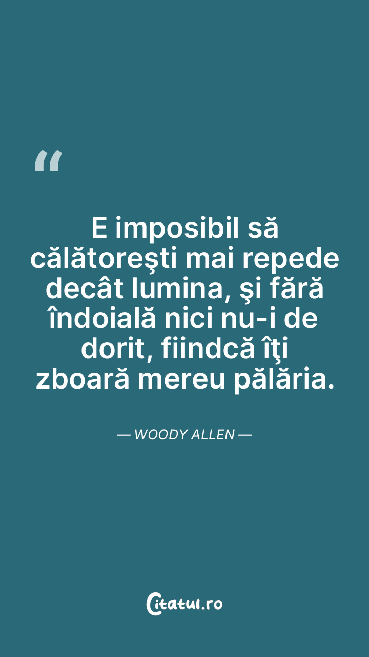 E imposibil să călătoreşti mai repede decât lumina, şi fără îndoială nici nu-i de dorit, fiindcă îţi zboară mereu pălăria. Woody Allen