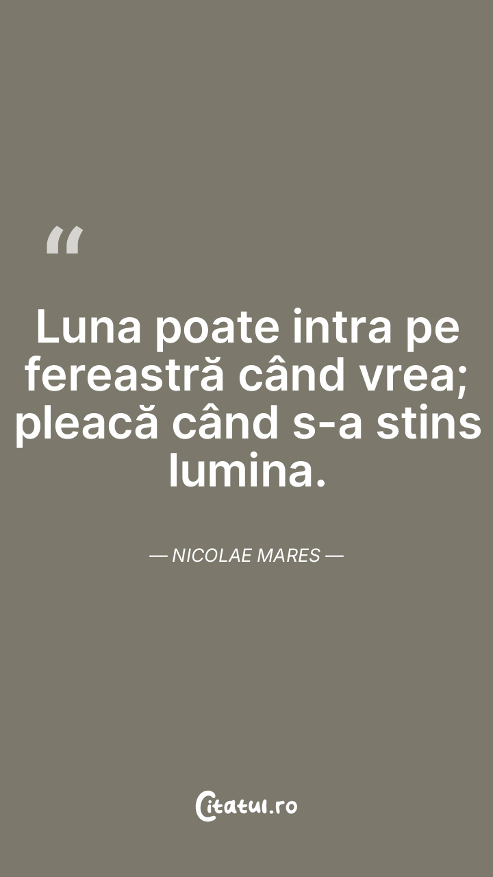 Luna poate intra pe fereastră când vrea; pleacă când s-a stins lumina. Nicolae Mares