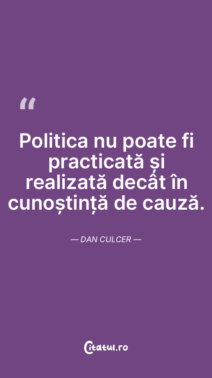 Politica nu poate fi practicată și realizată decât în cunoștință de cauză. Dan Culcer