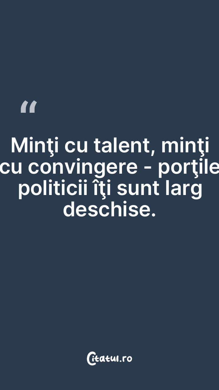 Minţi cu talent, minţi cu convingere - porţile politicii îţi sunt larg deschise.