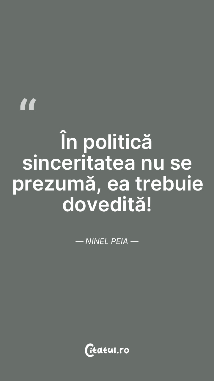 În politică sinceritatea nu se prezumă, ea trebuie dovedită! Ninel Peia