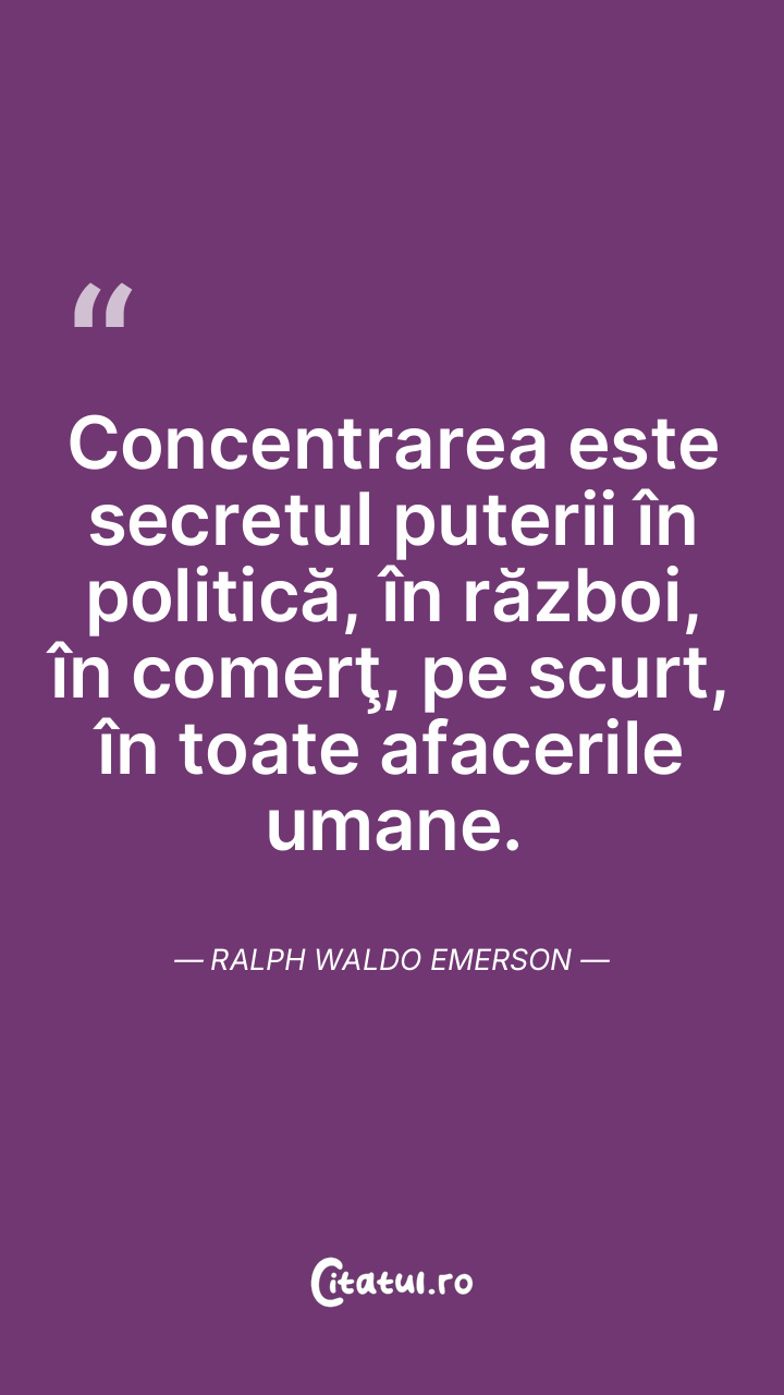 Concentrarea este secretul puterii în politică, în război, în comerţ, pe scurt, în toate afacerile umane. Ralph Waldo Emerson