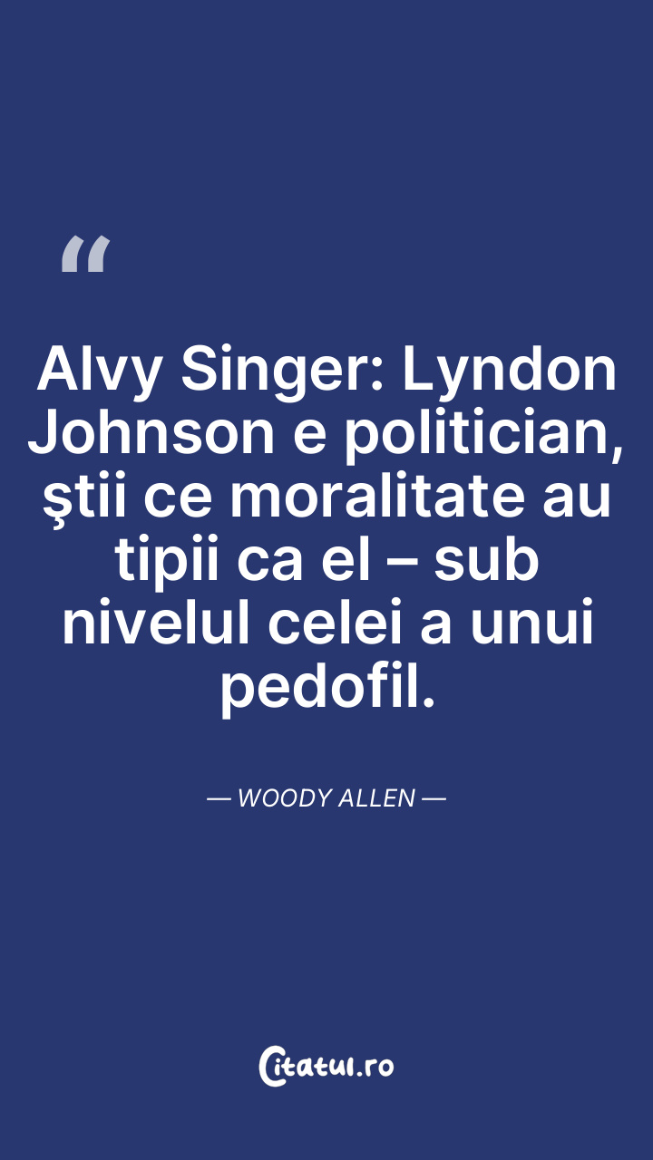 Alvy Singer: Lyndon Johnson e politician, ştii ce moralitate au tipii ca el – sub nivelul celei a unui pedofil. Woody Allen
