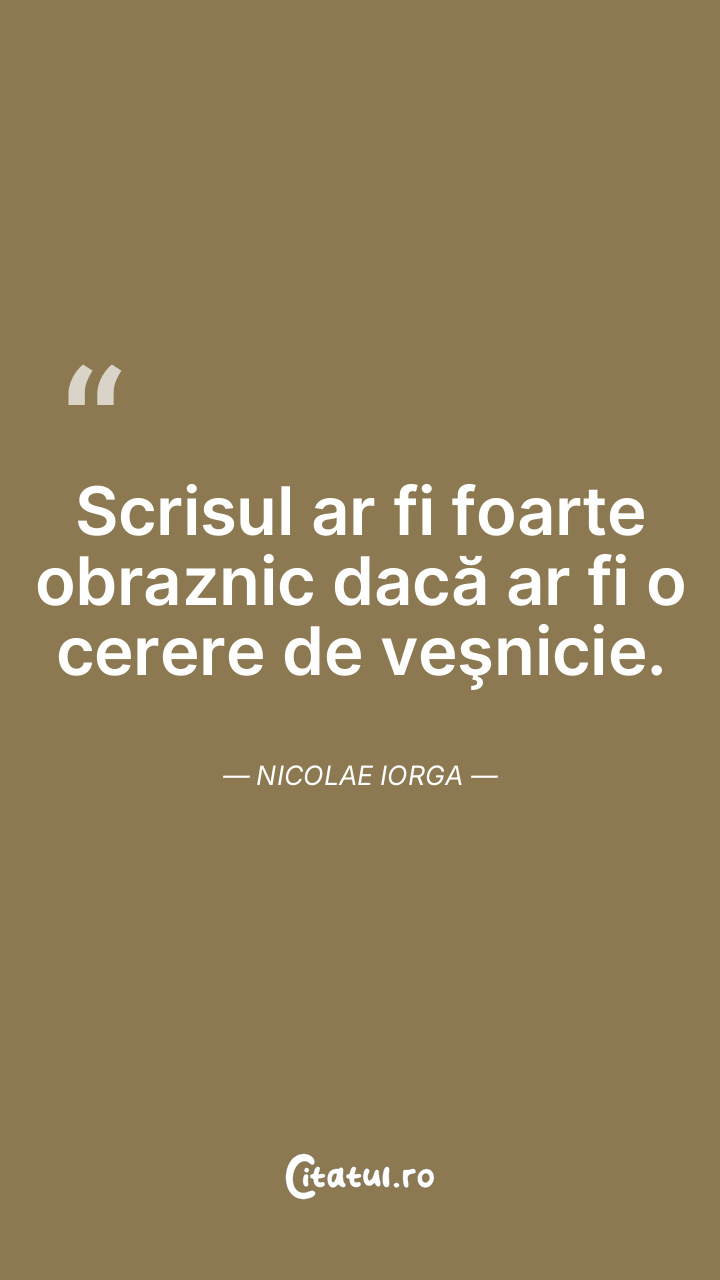 Scrisul ar fi foarte obraznic dacă ar fi o cerere de veşnicie. Nicolae Iorga