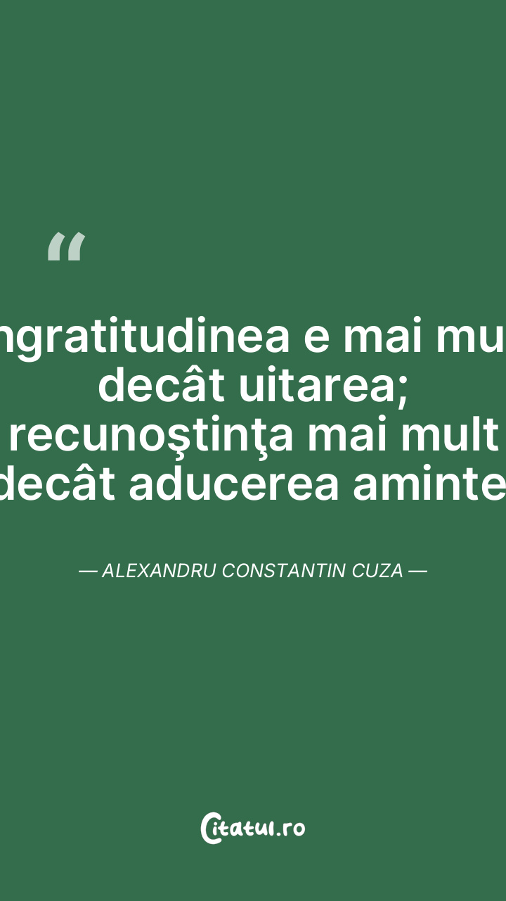 Ingratitudinea e mai mult decât uitarea; recunoştinţa mai mult decât aducerea aminte. Alexandru Constantin Cuza