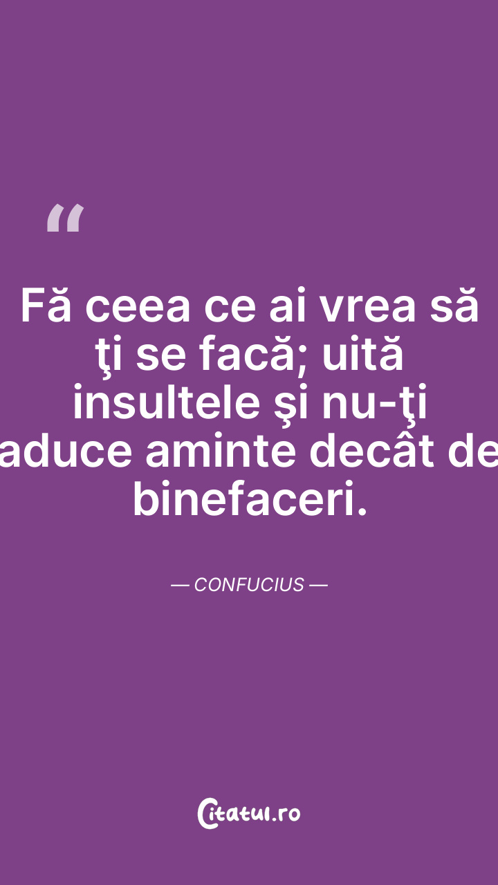 Fă ceea ce ai vrea să ţi se facă; uită insultele şi nu-ţi aduce aminte decât de binefaceri. Confucius