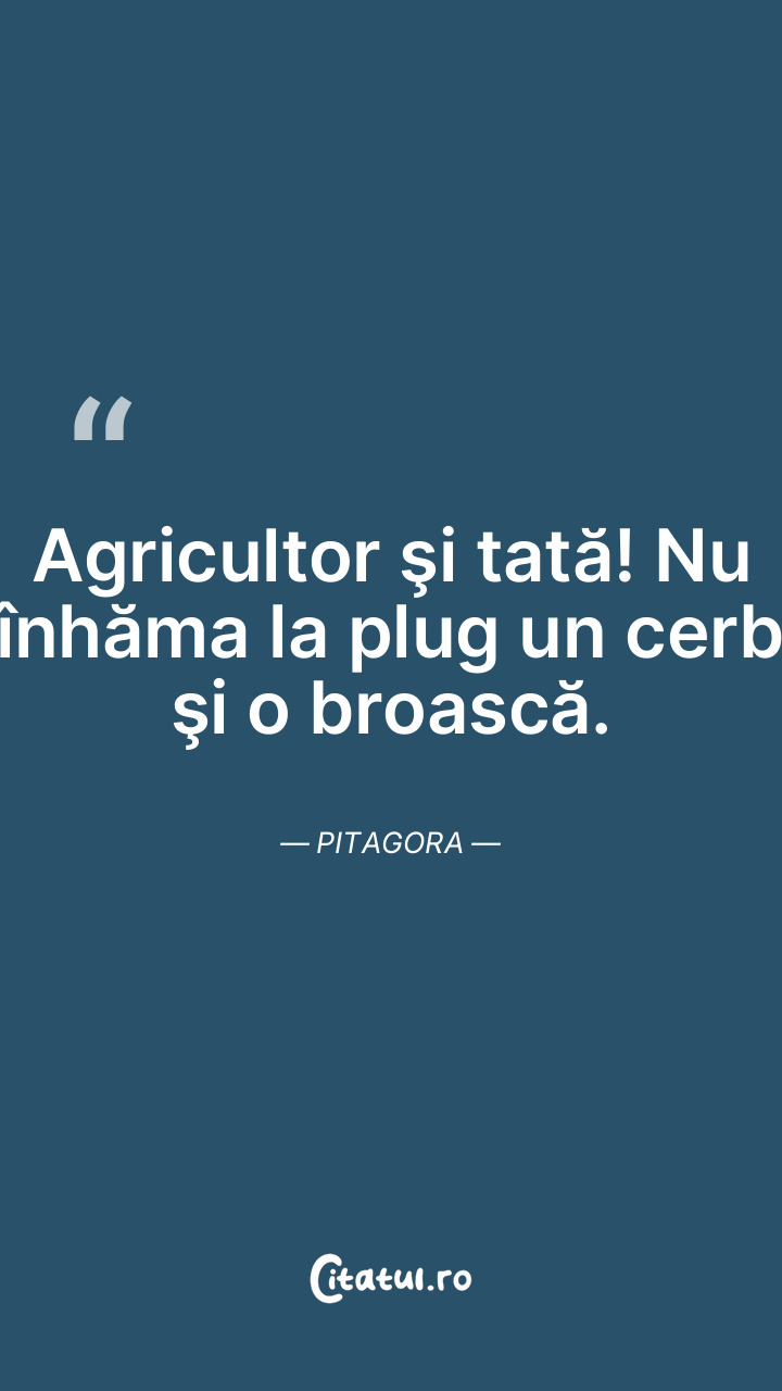 Agricultor şi tată! Nu înhăma la plug un cerb şi o broască. Pitagora