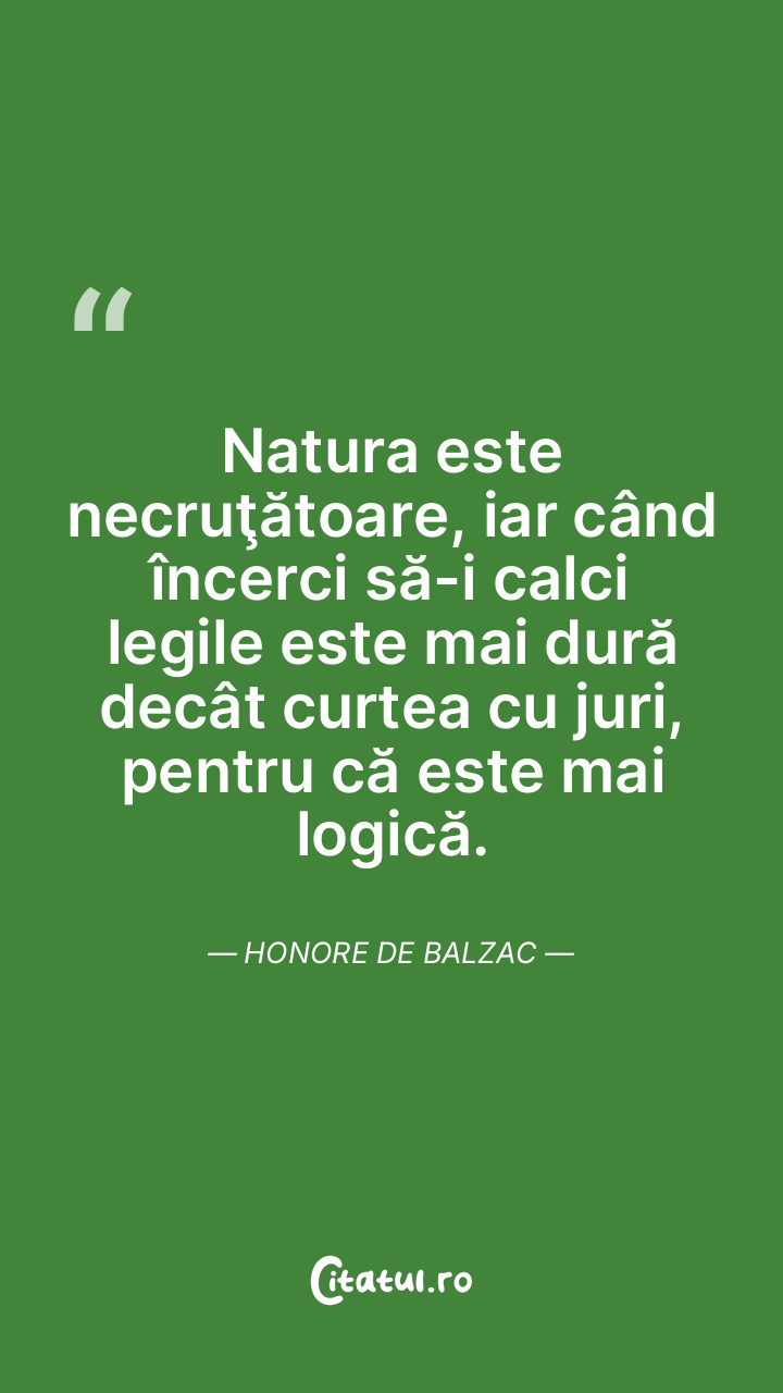 Natura este necruţătoare, iar când încerci să-i calci legile este mai dură decât curtea cu juri, pentru că este mai logică. Honore de Balzac