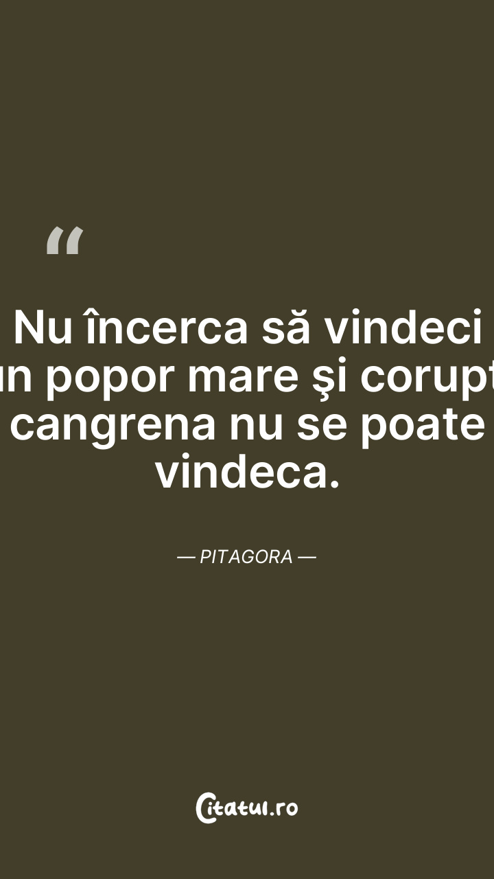 Nu încerca să vindeci un popor mare şi corupt: cangrena nu se poate vindeca. Pitagora