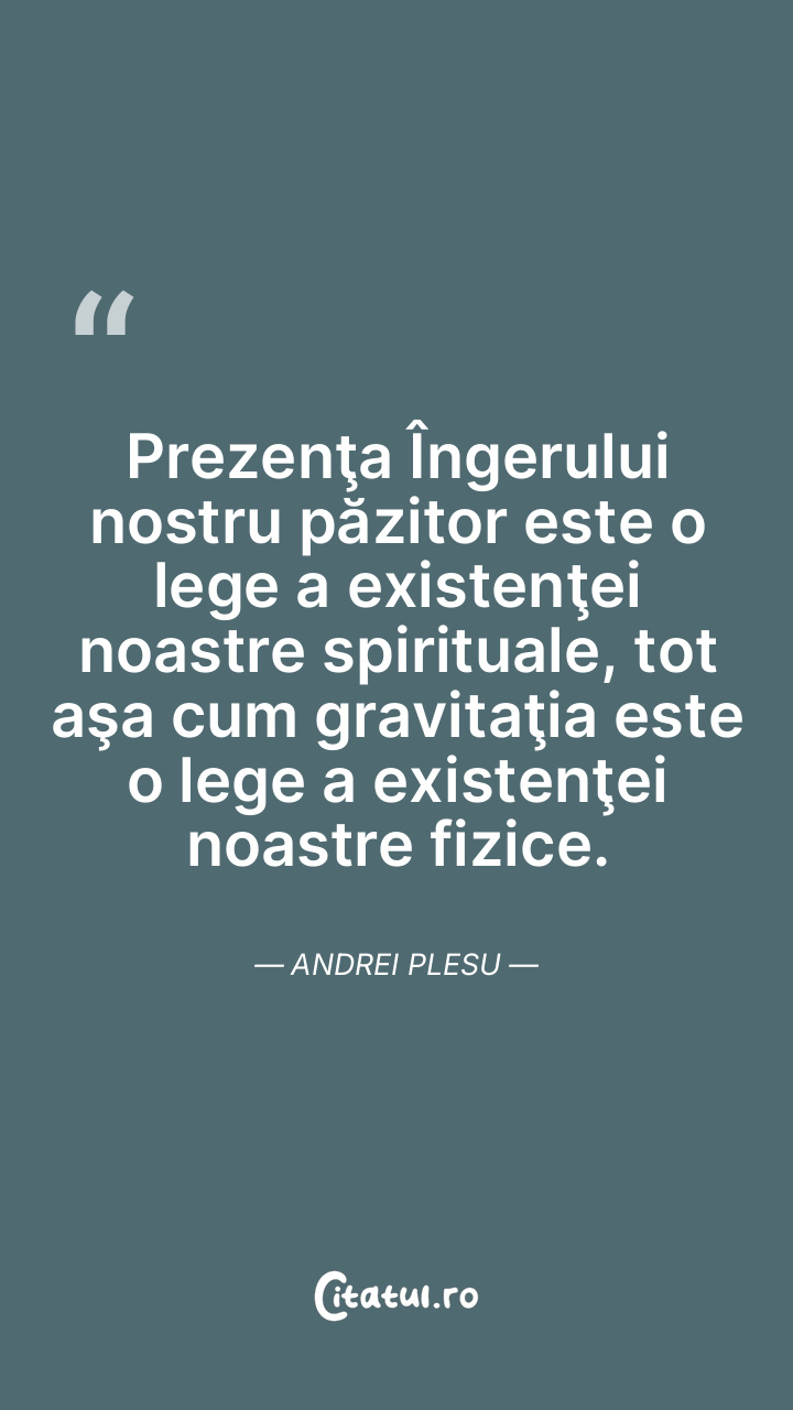 Prezenţa Îngerului nostru păzitor este o lege a existenţei noastre spirituale, tot aşa cum gravitaţia este o lege a existenţei noastre fizice. Andrei Plesu