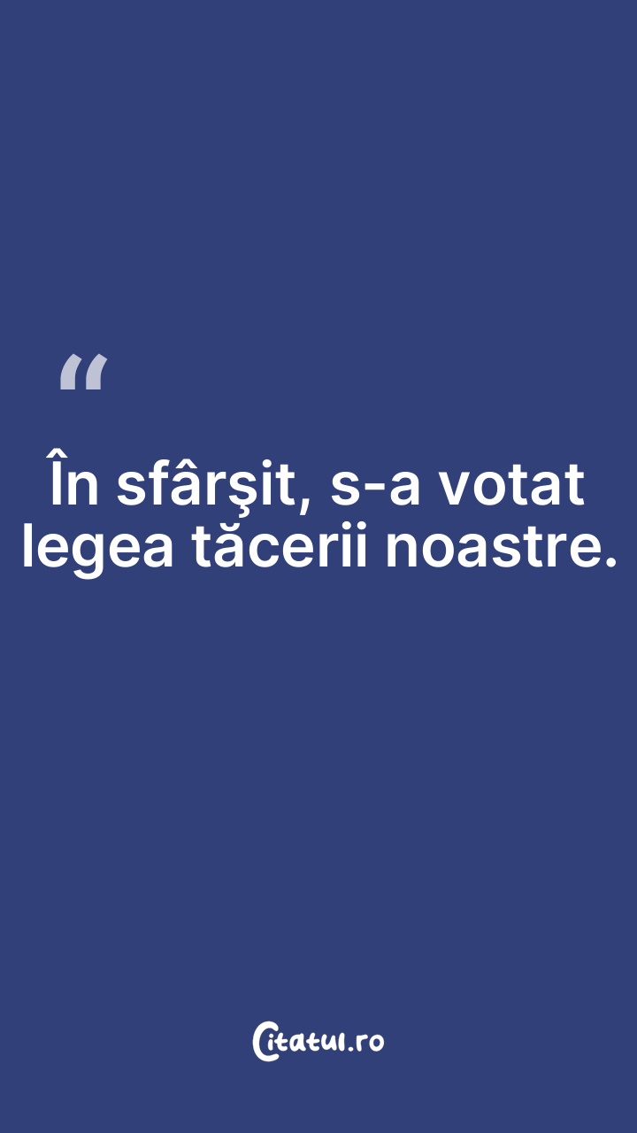 În sfârşit, s-a votat legea tăcerii noastre.