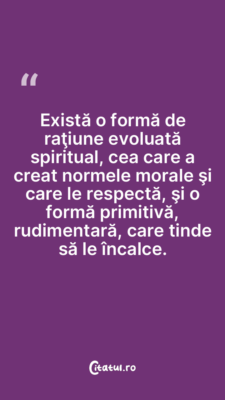 Există o formă de raţiune evoluată spiritual, cea care a creat normele morale şi care le respectă, şi o formă primitivă, rudimentară, care tinde să le încalce.