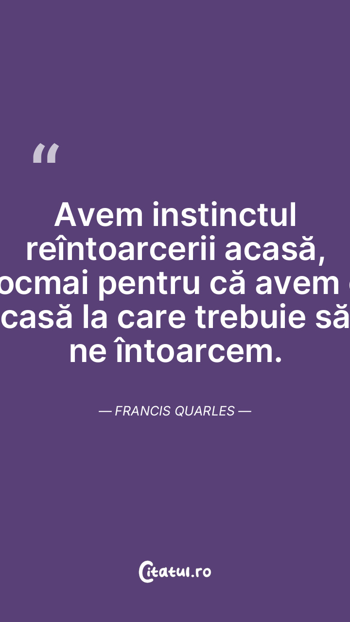 Avem instinctul reîntoarcerii acasă, tocmai pentru că avem o casă la care trebuie să ne întoarcem. Francis Quarles