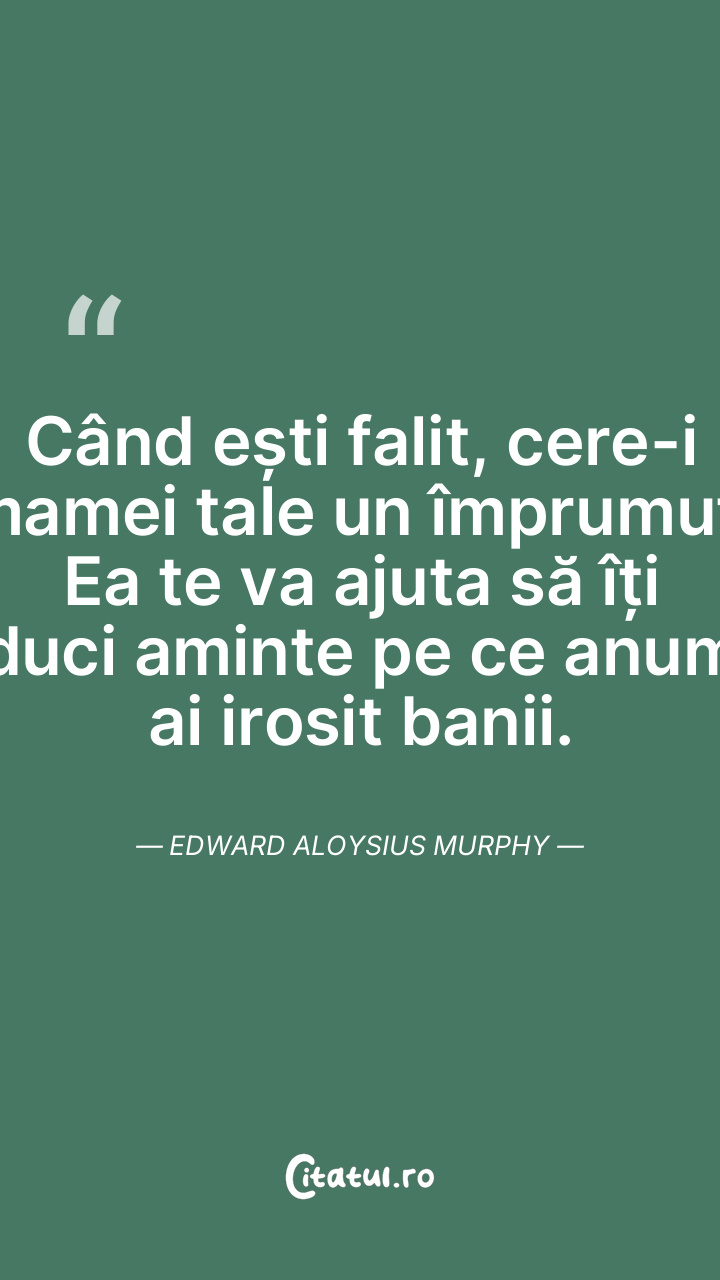 Când ești falit, cere-i mamei tale un împrumut. Ea te va ajuta să îți aduci aminte pe ce anume ai irosit banii. Edward Aloysius Murphy