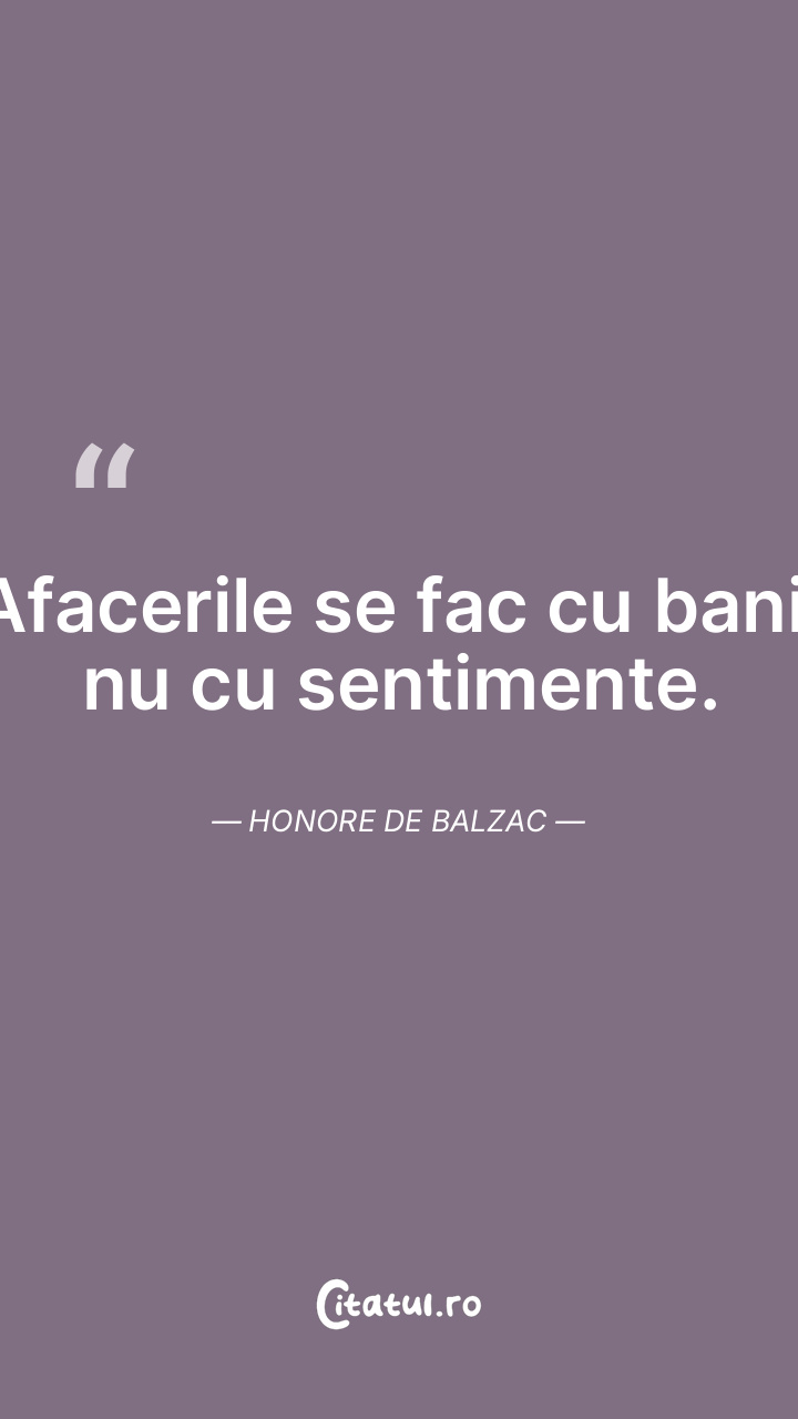 Afacerile se fac cu bani, nu cu sentimente. Honore de Balzac