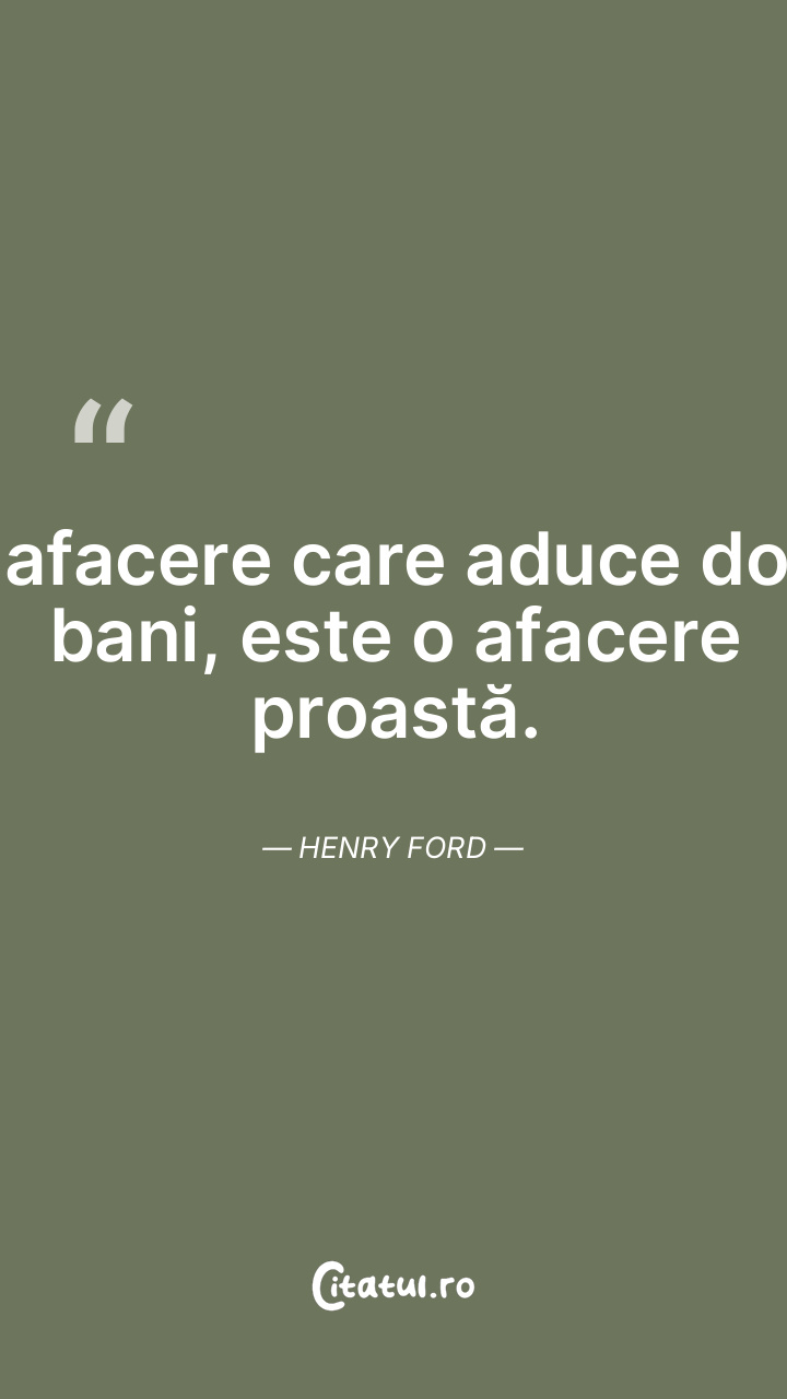 O afacere care aduce doar bani, este o afacere proastă. Henry Ford