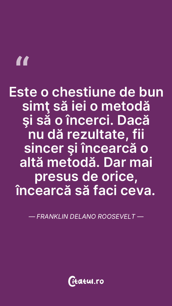 Este o chestiune de bun simţ să iei o metodă şi să o încerci. Dacă nu dă rezultate, fii sincer şi încearcă o altă metodă. Dar mai presus de orice, încearcă să faci ceva. Franklin Delano Roosevelt