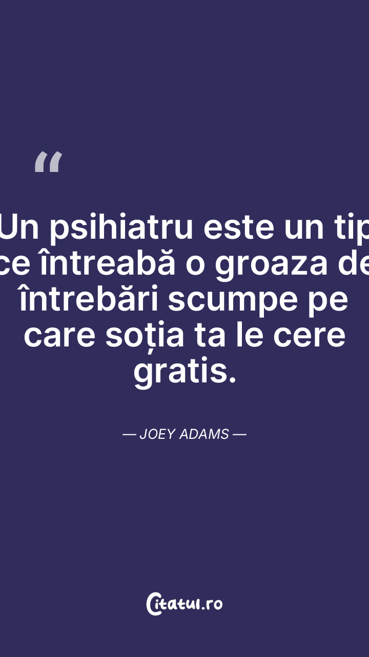 Un psihiatru este un tip ce întreabă o groaza de întrebări scumpe pe care soția ta le cere gratis. Joey Adams