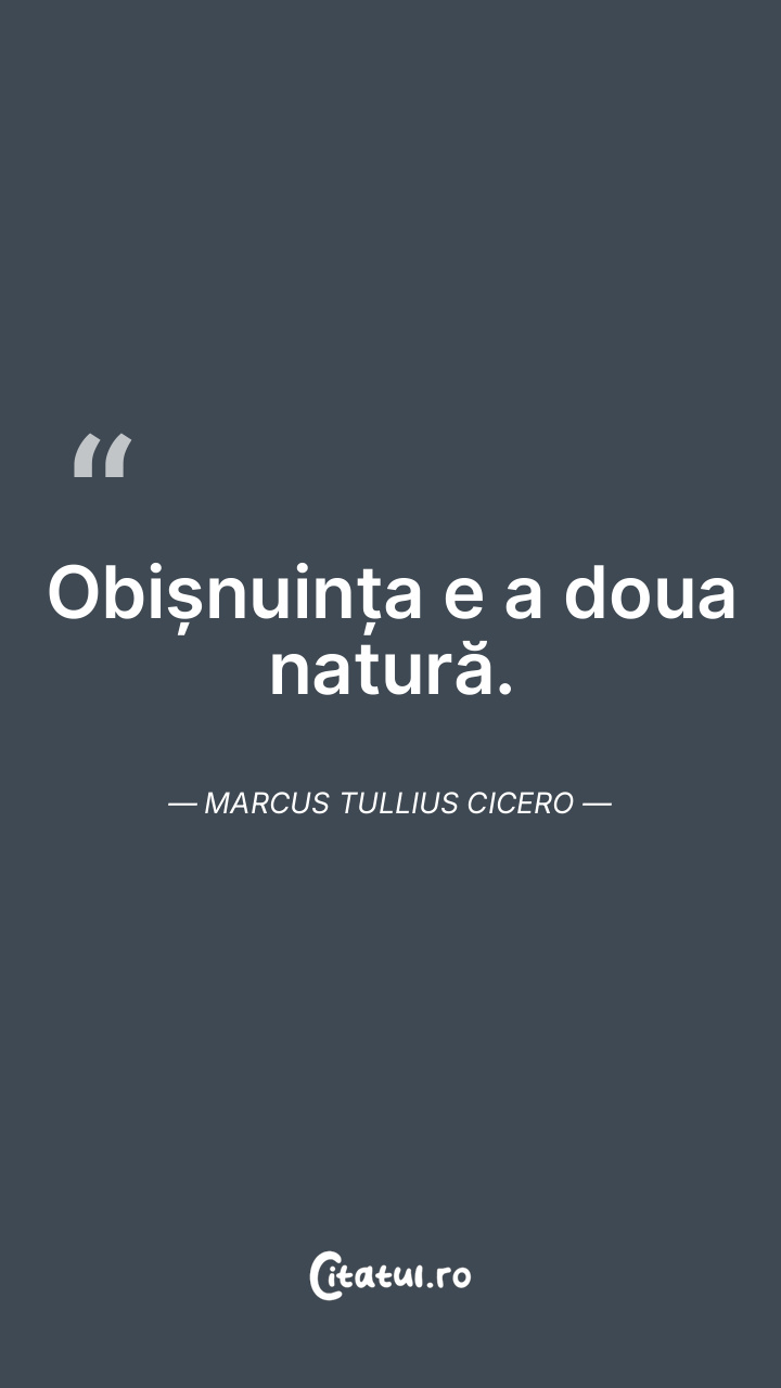 Obișnuința e a doua natură. Marcus Tullius Cicero ...