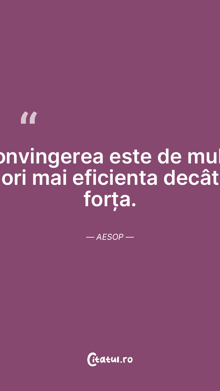 Convingerea este de multe ori mai eficienta decât forța. Aesop