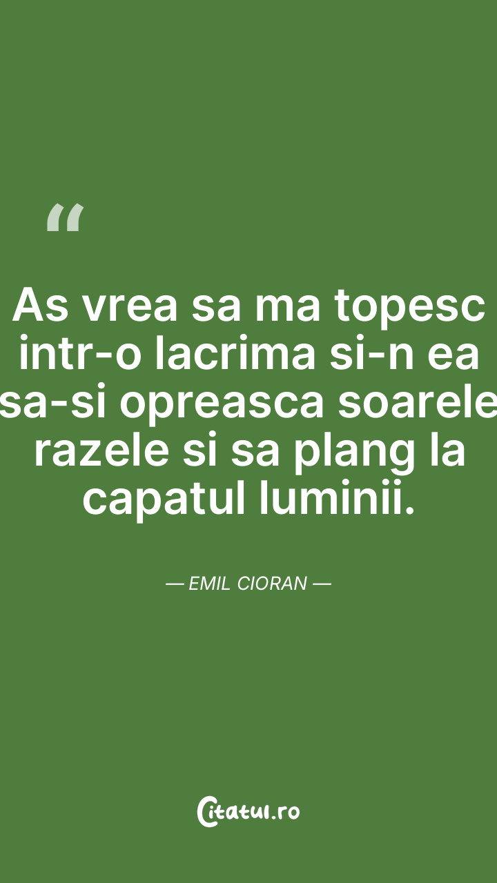 As vrea sa ma topesc intr-o lacrima si-n ea sa-si opreasca soarele razele si sa plang la capatul luminii. Emil Cioran