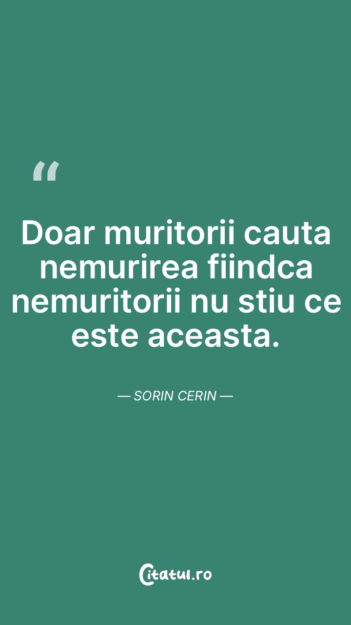 Doar muritorii cauta nemurirea fiindca nemuritorii nu stiu ce este aceasta. Sorin Cerin