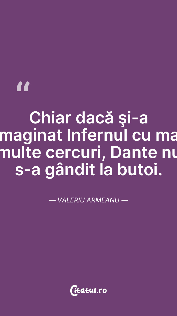 Chiar dacă şi-a imaginat Infernul cu mai multe cercuri, Dante nu s-a gândit la butoi. Valeriu Armeanu
