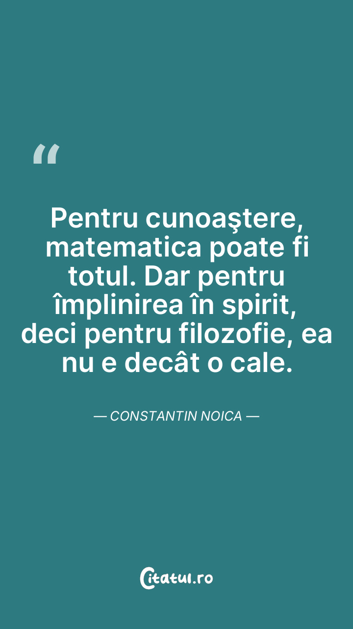 Pentru cunoaştere, matematica poate fi totul. Dar pentru împlinirea în spirit, deci pentru filozofie, ea nu e decât o cale. Constantin Noica