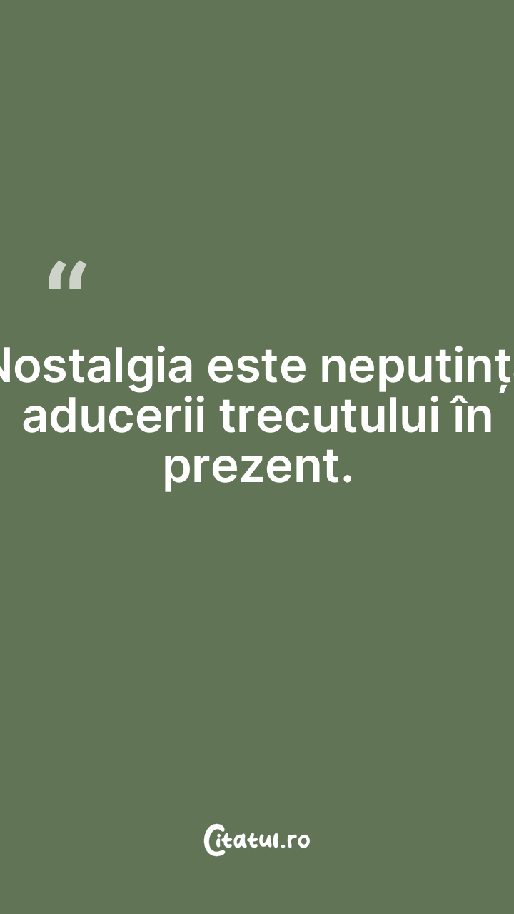 Nostalgia este neputința aducerii trecutului în pr...