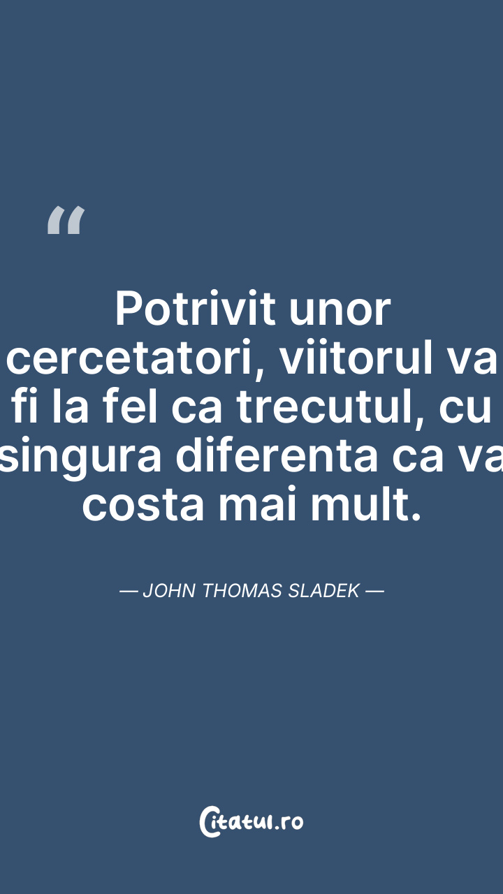 Potrivit unor cercetatori, viitorul va fi la fel ca trecutul, cu singura diferenta ca va costa mai mult. John Thomas Sladek